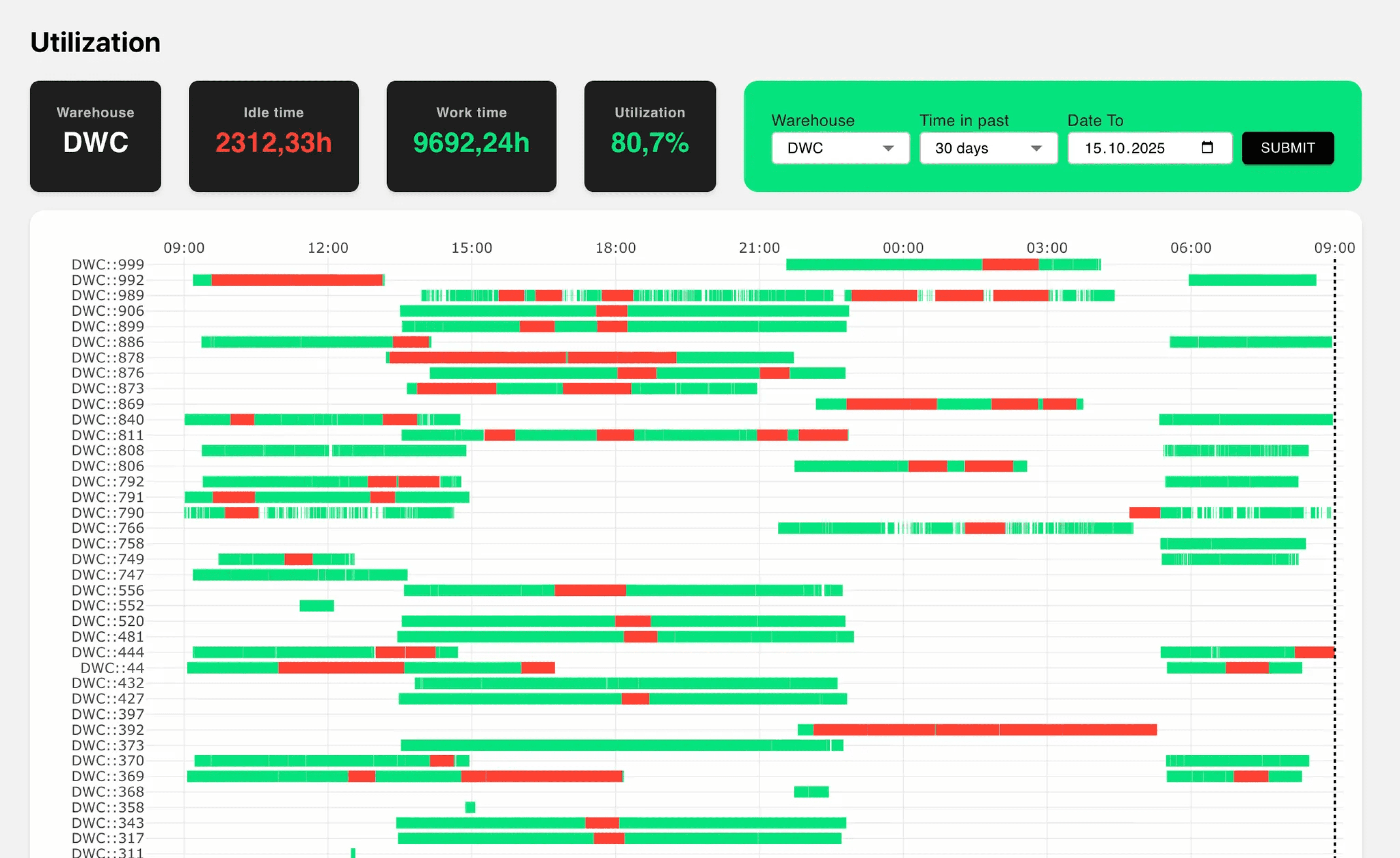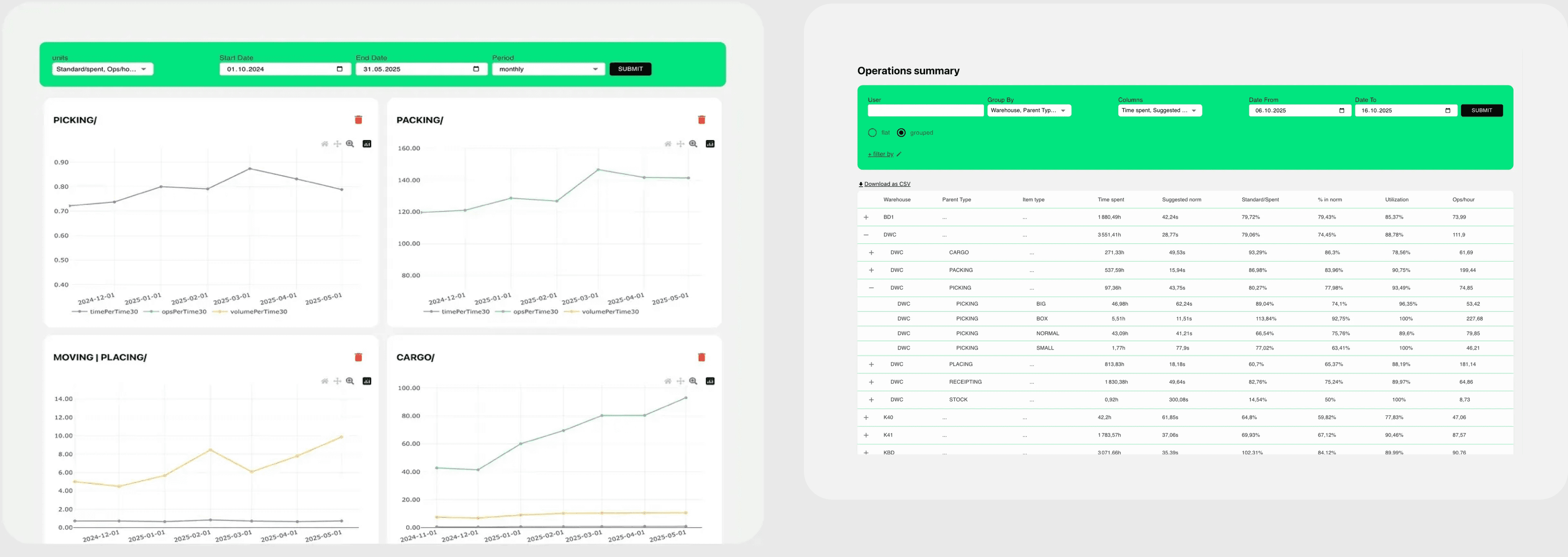 We introduced labor forecasting using norms, actual task times, and expected workloads. A data science–driven forecasting module gave managers precise insights into required labor hours by volume, date, and operation.